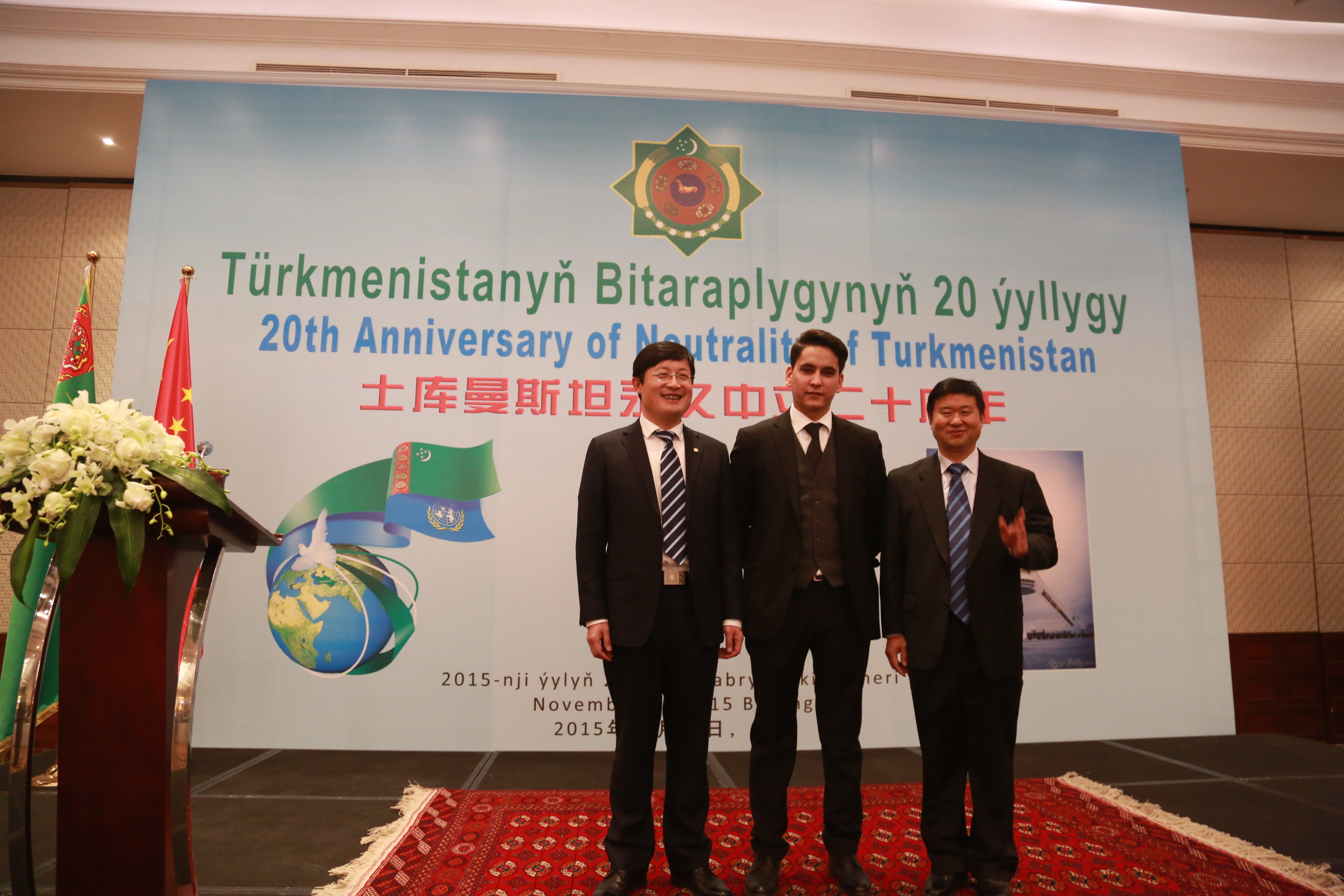 2015年11月25日,三川能源公司董事長郭海波應土庫曼斯坦駐華大使齊娜爾·魯斯捷莫娃·塔季耶夫娜邀請,出席土庫曼斯坦永久中立二十周年招待會。土庫曼斯坦駐華大使齊娜爾·魯斯捷莫娃·塔季耶夫娜、中國外交部副部長程國平分別做了重要講話。公司總經理張顯華一行陪同。
