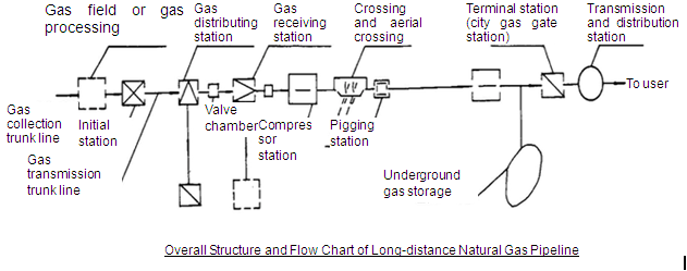 Natural gas is produced in gas field, processed in united station and then transmitted outward.